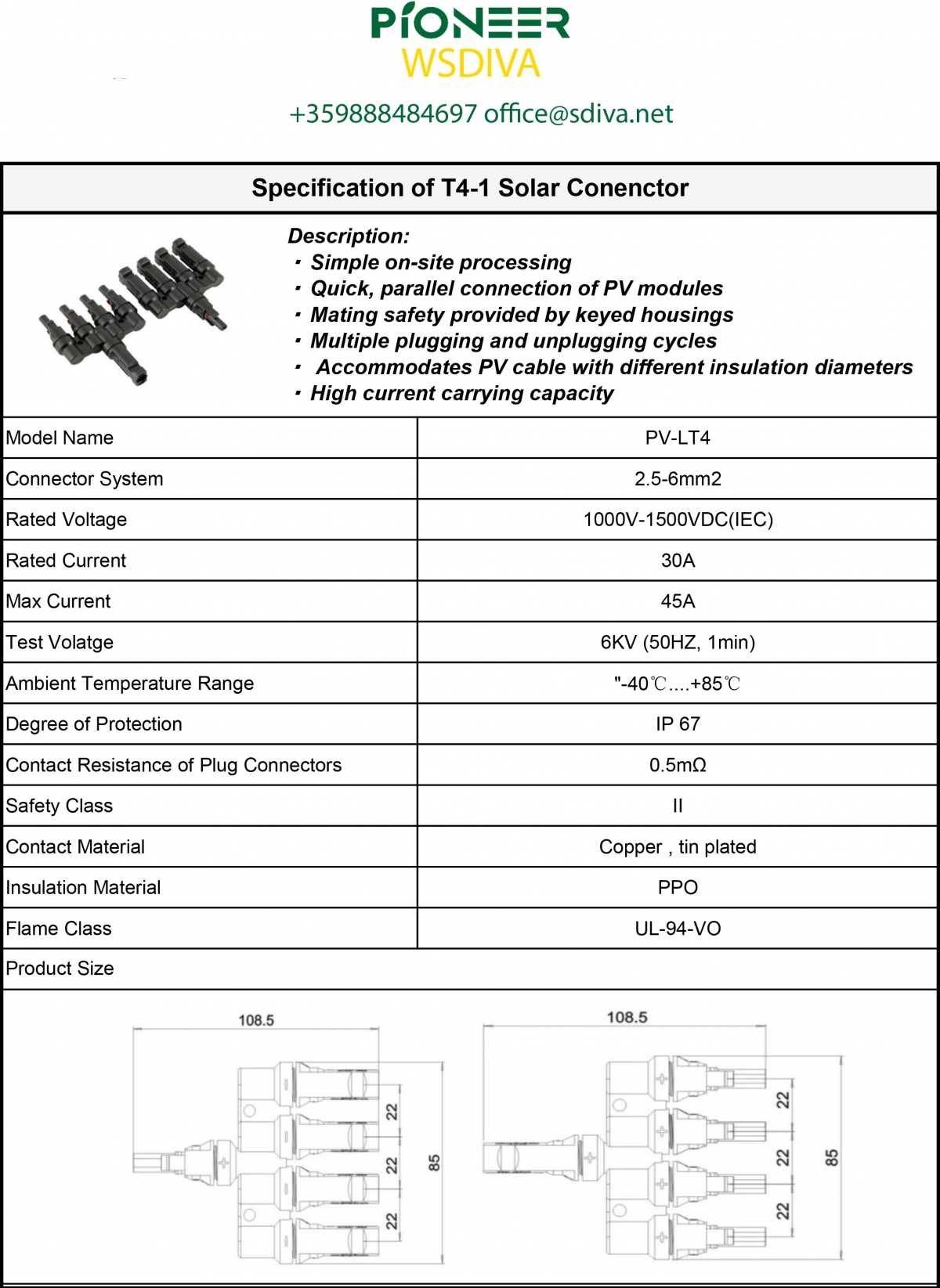 Комплект PV соларен конектор T4 съвместим Mc4, 1-4