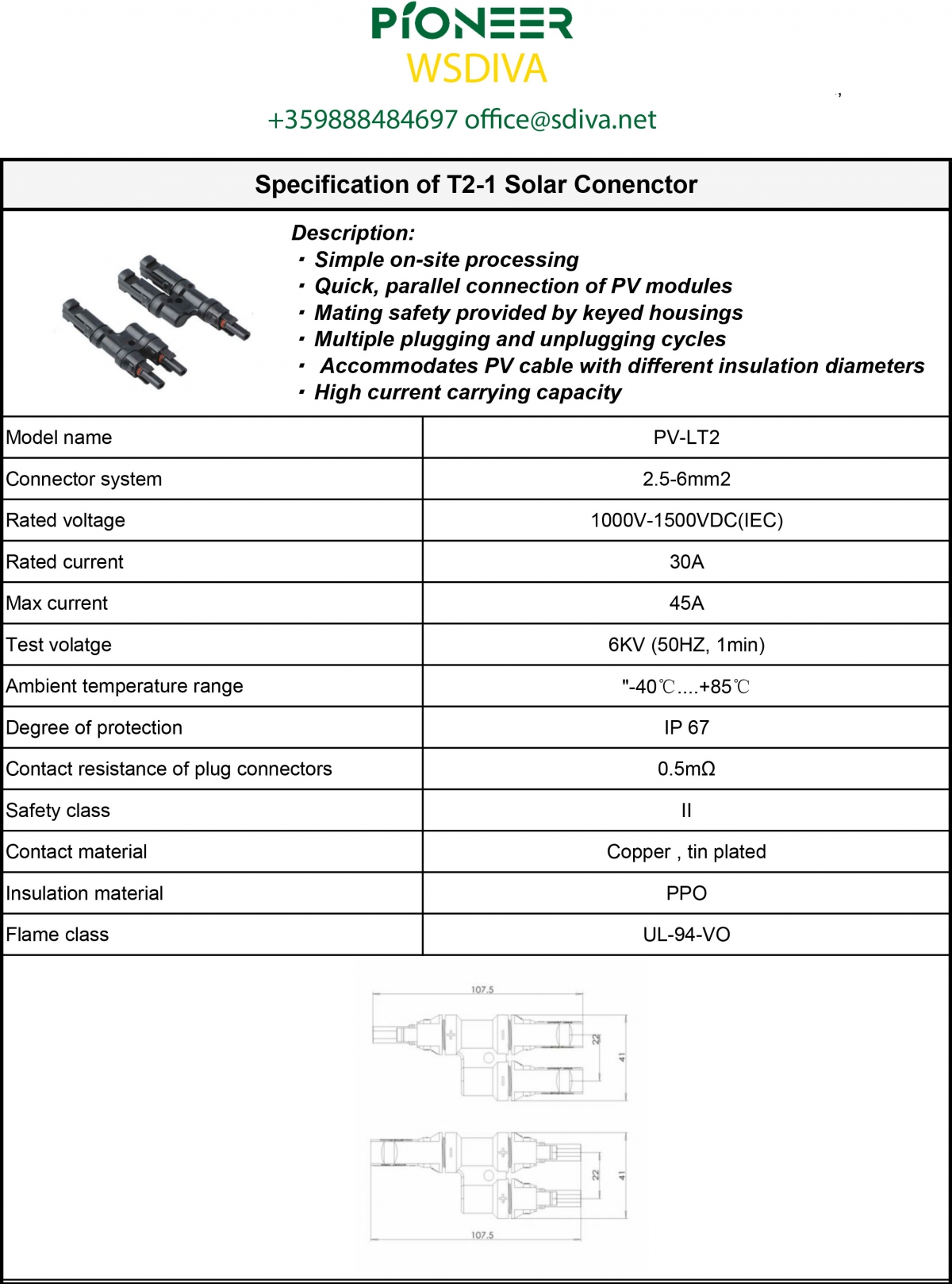 Комплект PV соларен конектор Т2 съвместим Mc4, 1-2