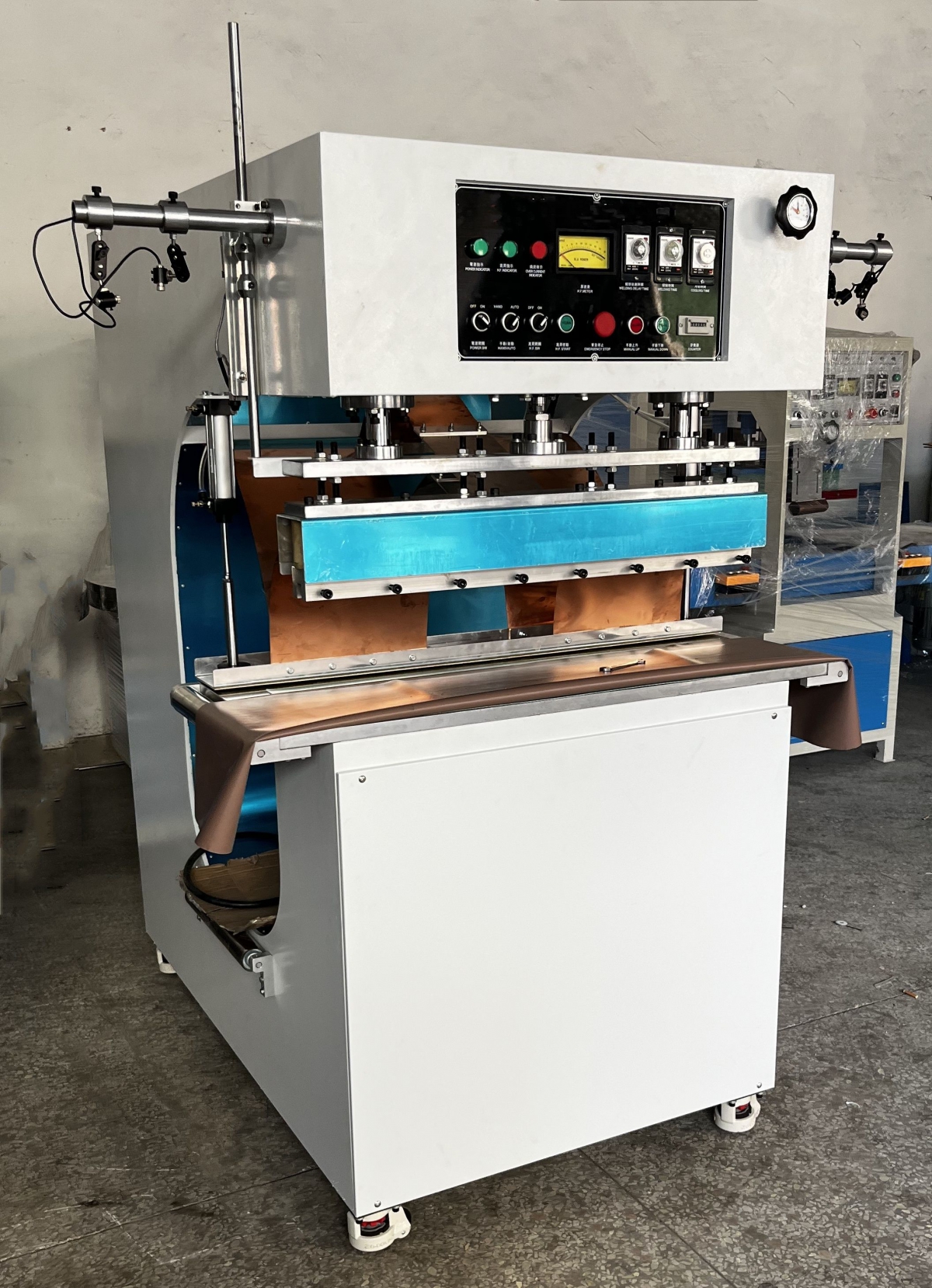 Професионална високочестотна машина, предназначена за заваряване на винил и кристал | PVC и PU покривен технически текстил.